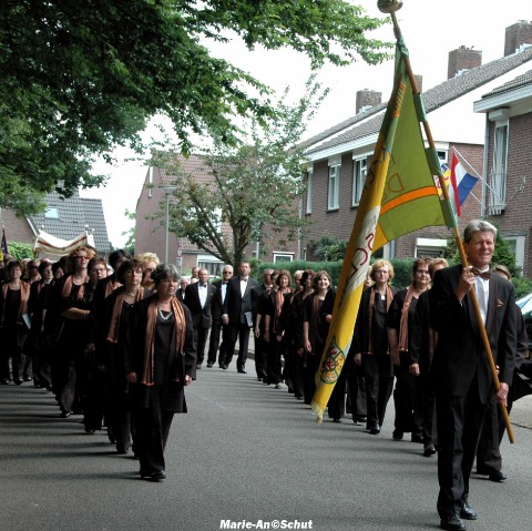 Deze repetitie werd, net als vorig jaar, gehouden in het parkje achter de kerk.